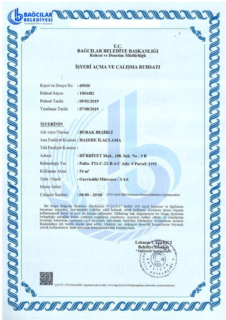 SAĞLIK BAKANLIĞI İZİNLERİ VE SERTİFİKALAR